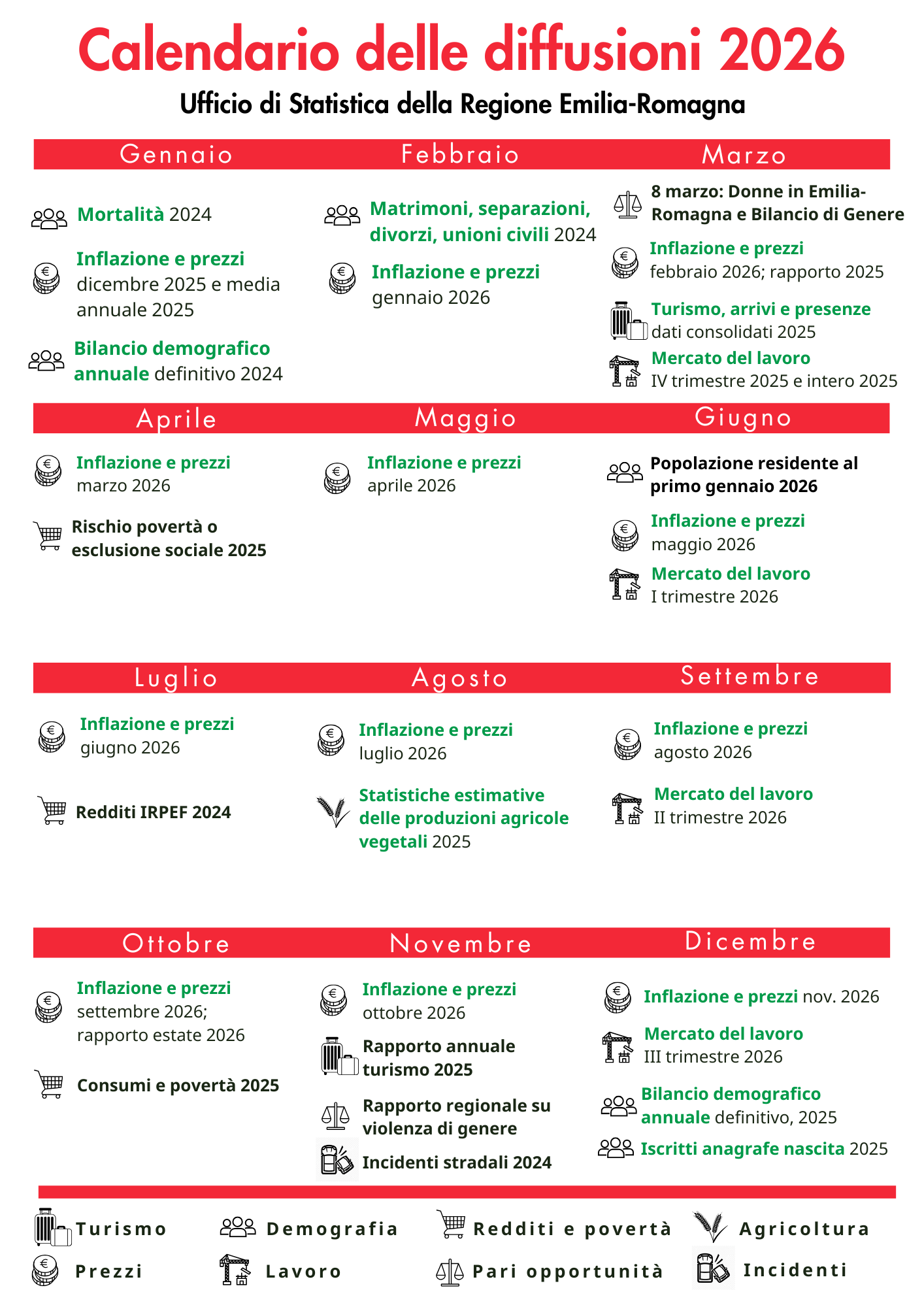 - Metà mese: Inflazione e prezzi, mensili, settembre 2026; Rapporto estate 2026;